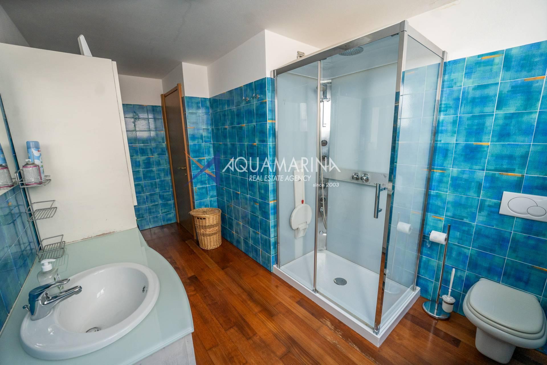 La casa si compone di ingresso indipendente su ampia zona giorno living con cucina a vista e zona divano con vetrata a tutta parete con accesso alla terrazza abitabile e panoramica su mare e colline.