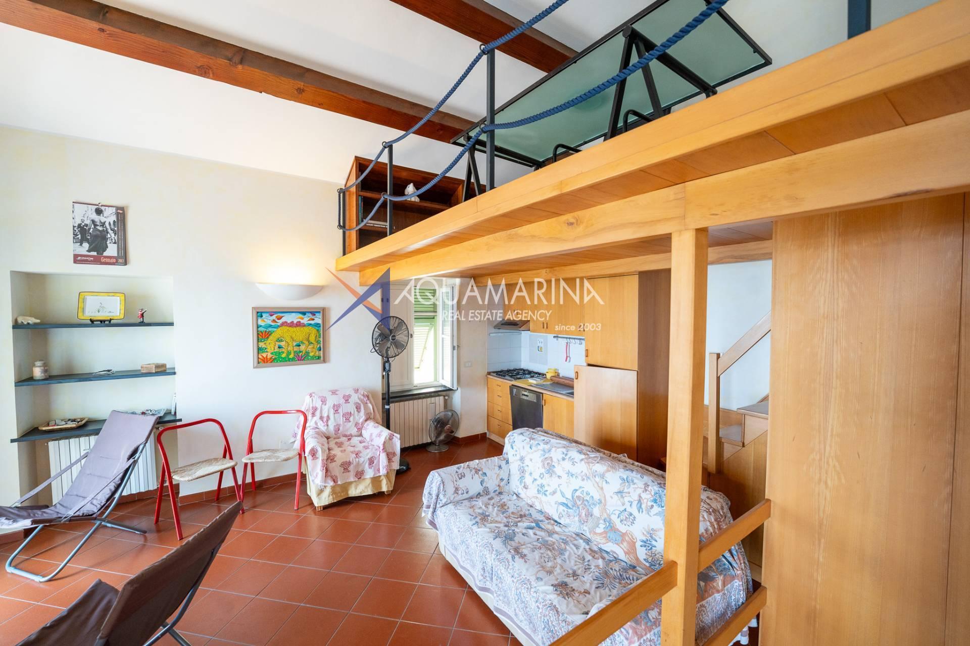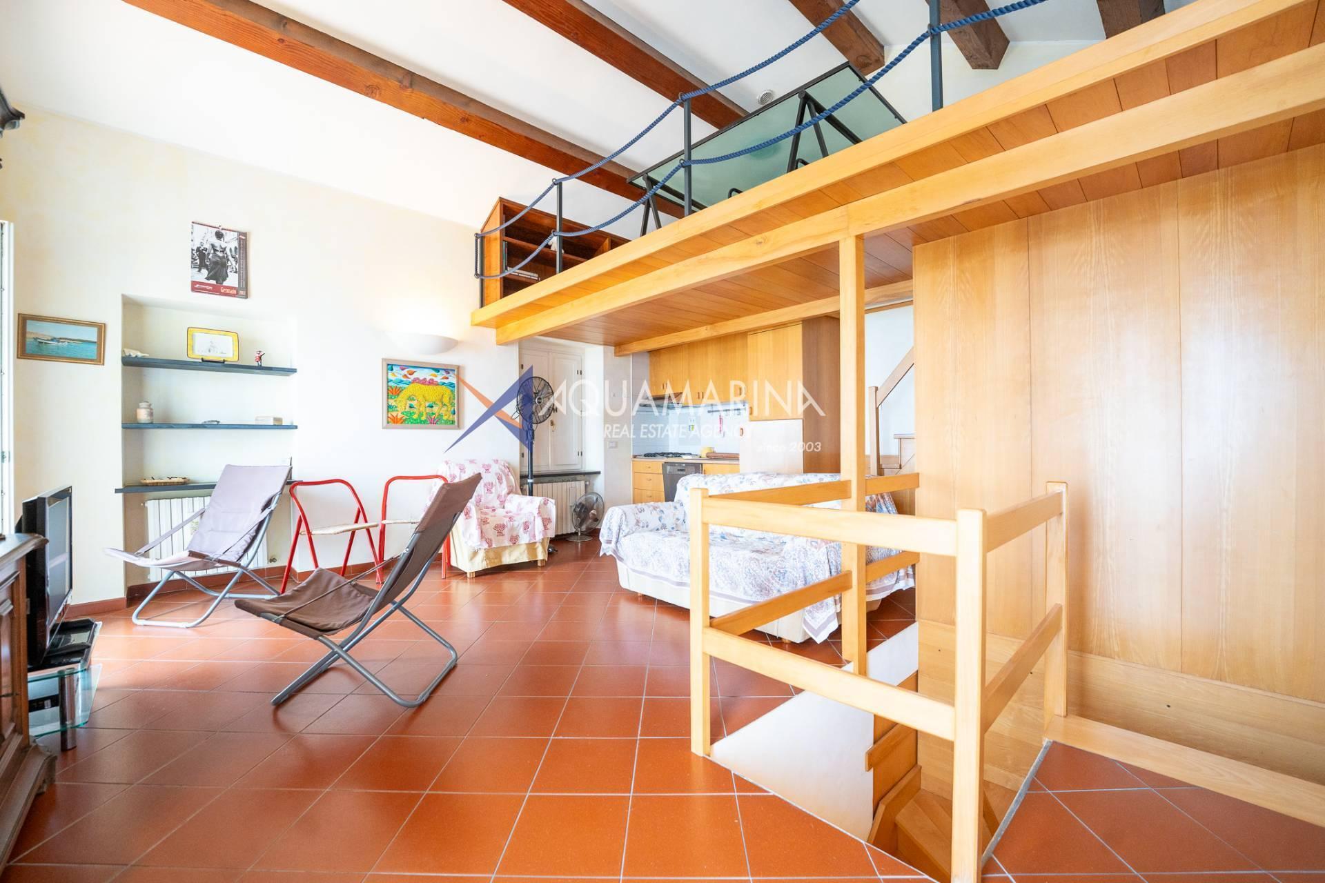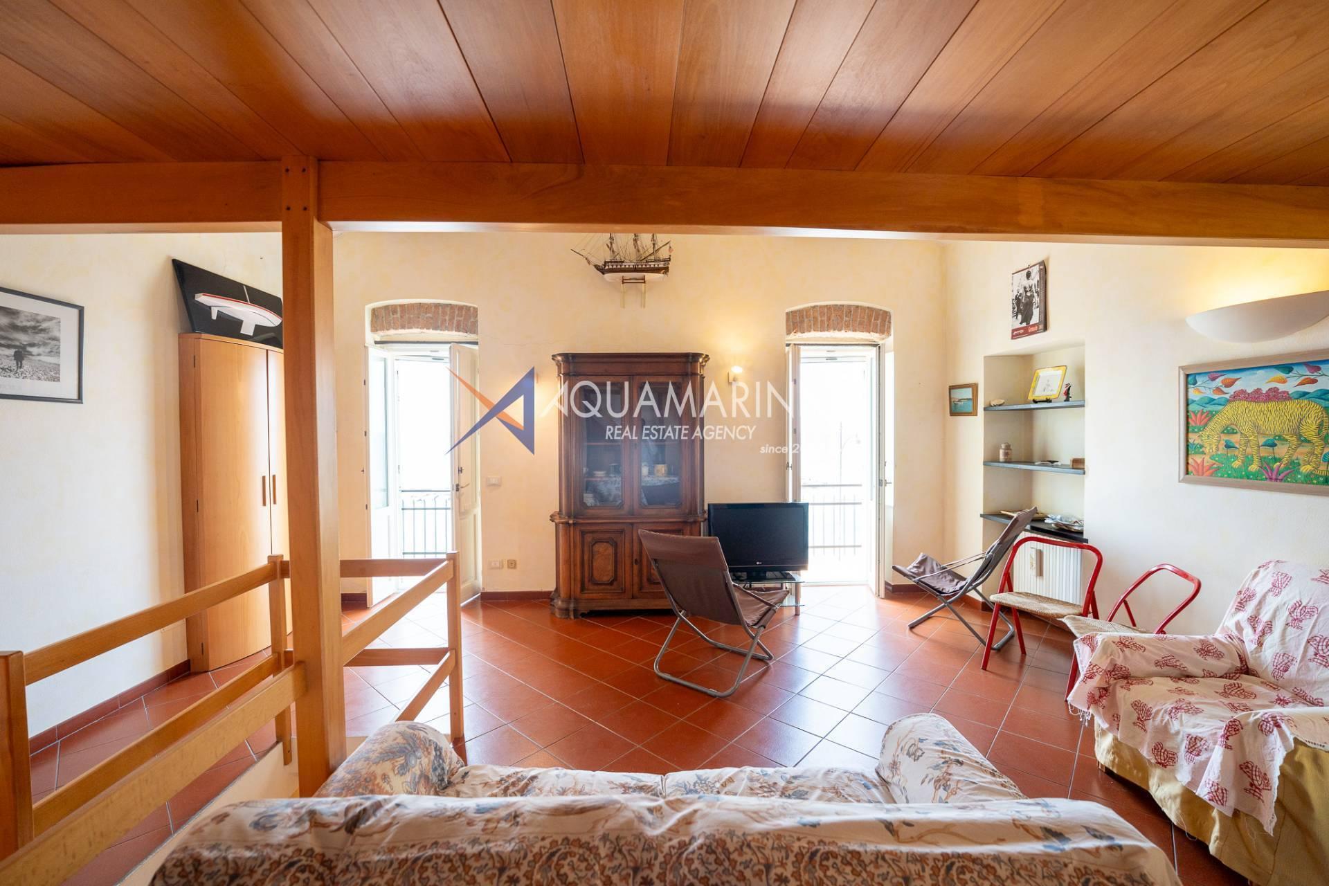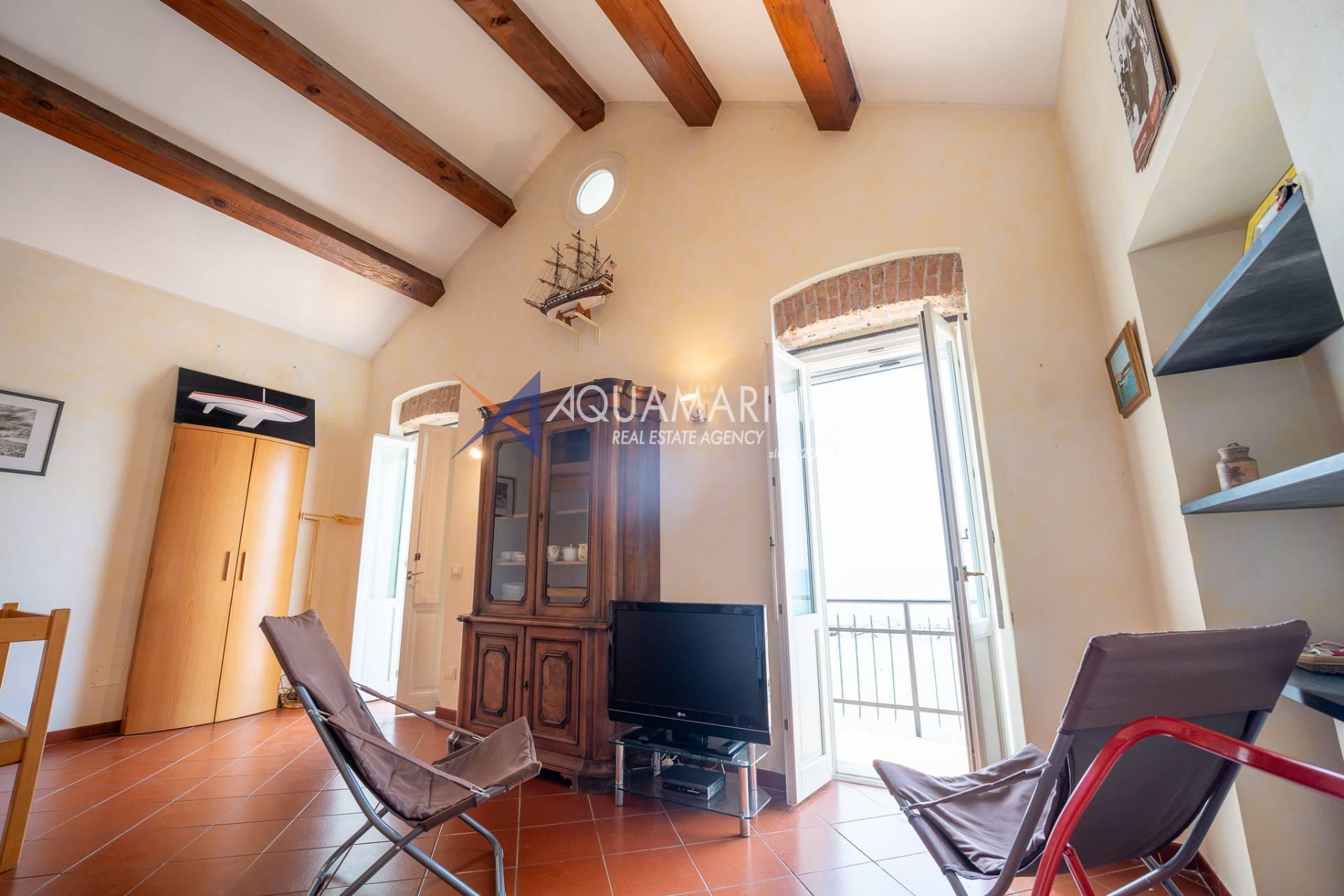 Al secondo piano raggiungibile da una scala interna troviamo la luminosissima zona giorno, con il balcone ideale per cenare davanti al mare, la cucina, completamente attrezzata e funzionale e il soggiorno che gode di una bellissima esposizione a sud, che garantisce una luminosità naturale durante tutto il giorno.