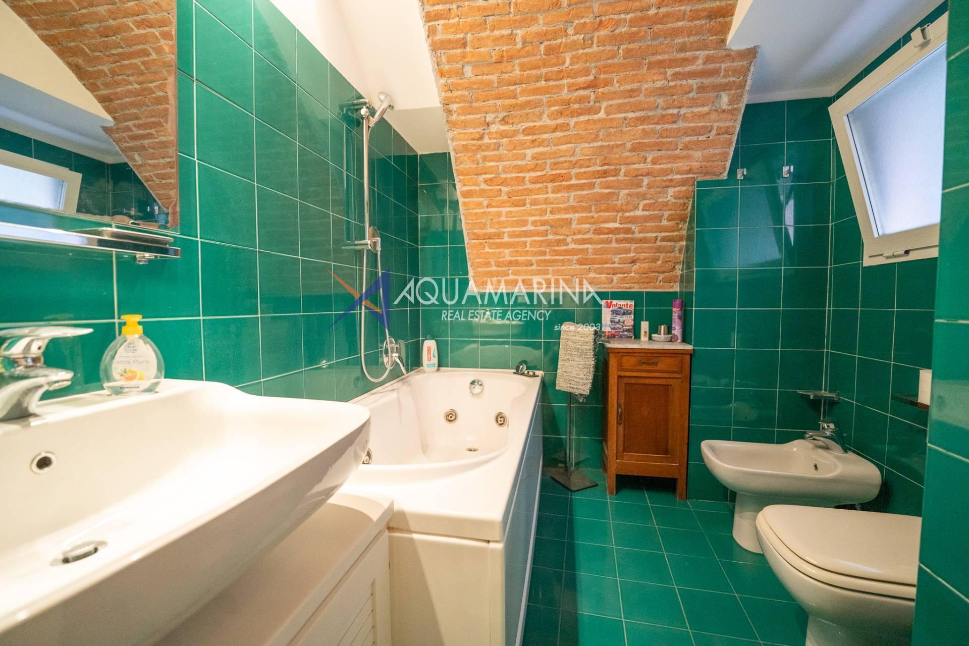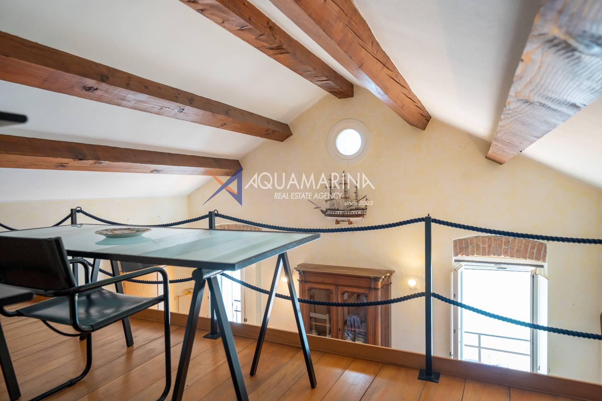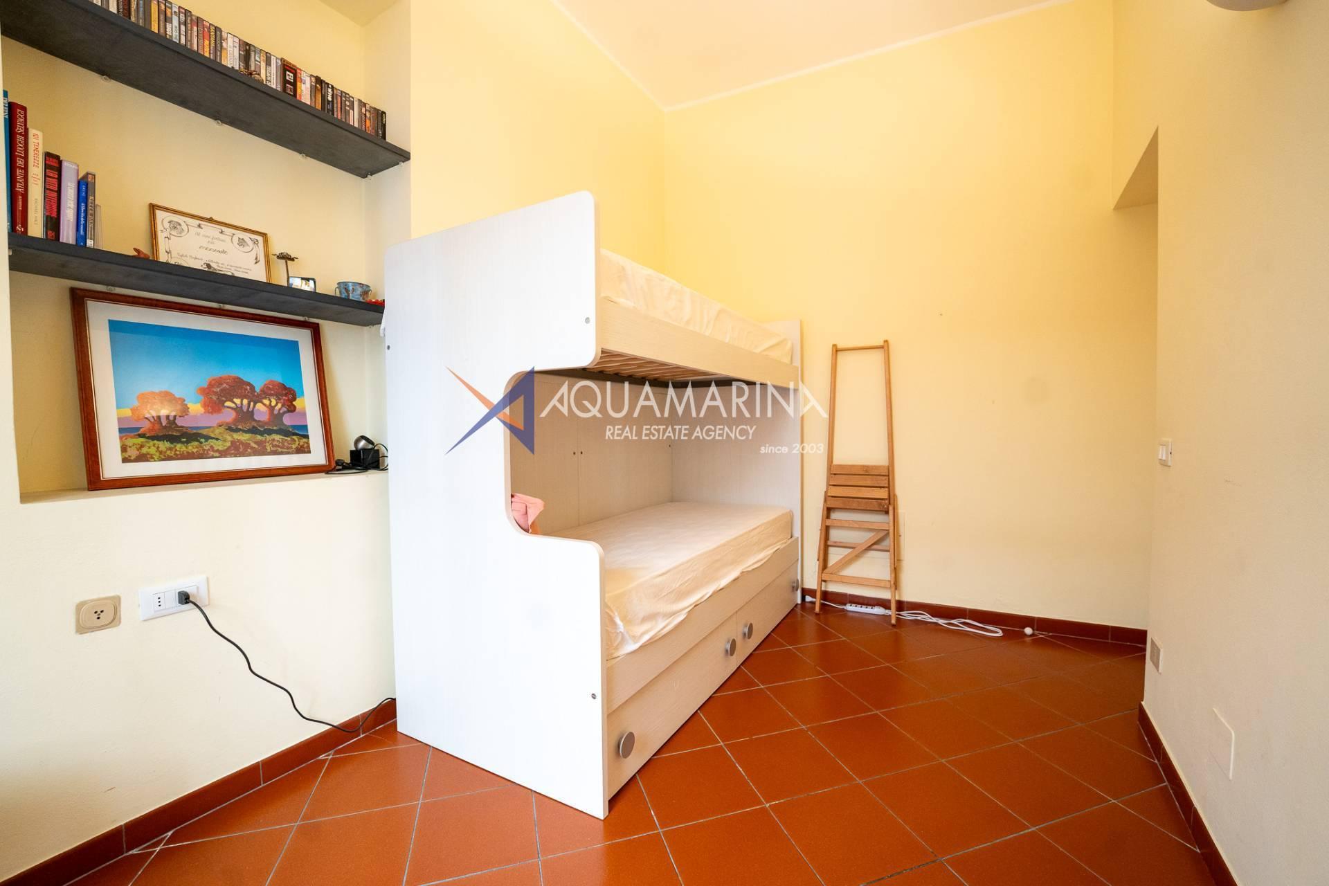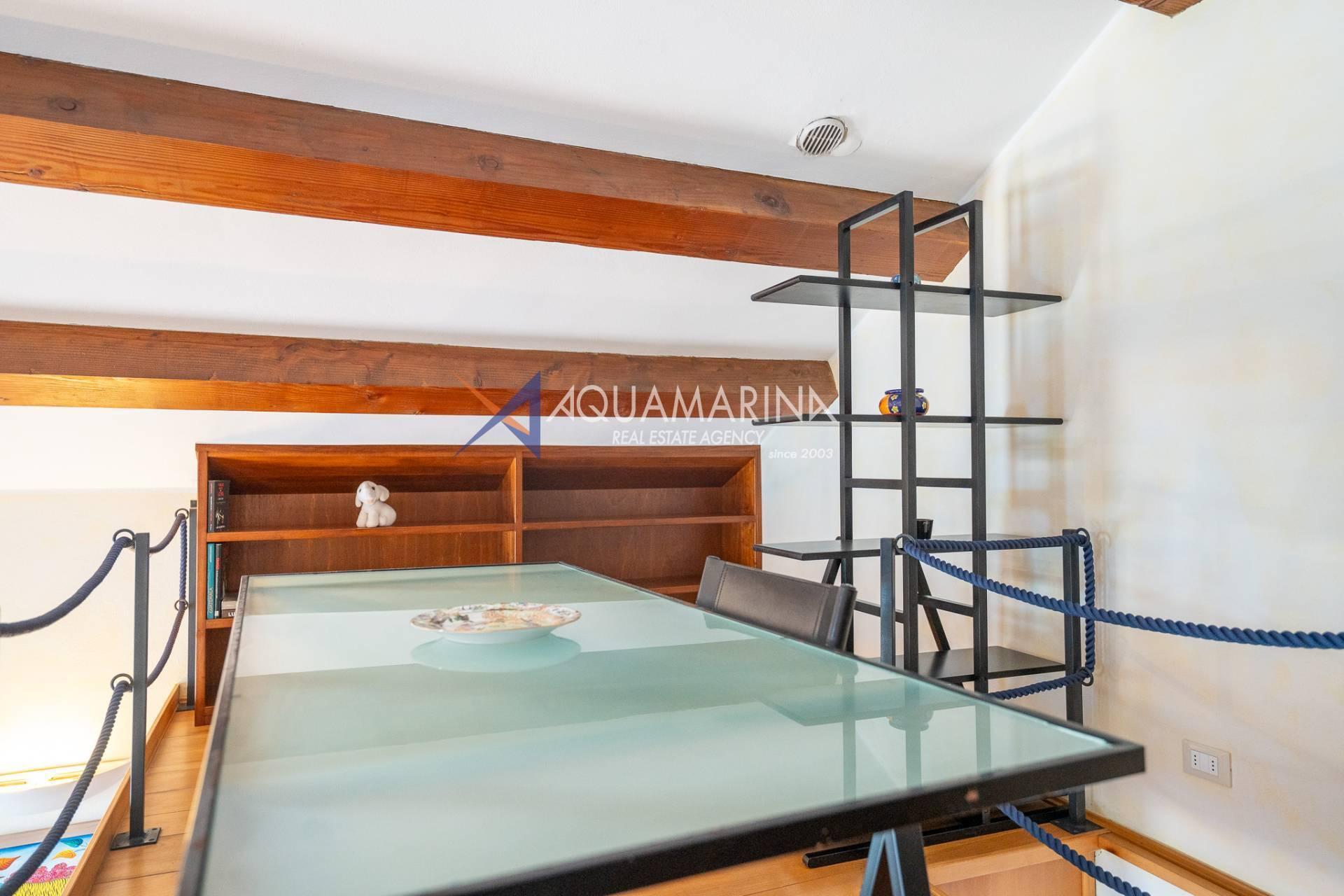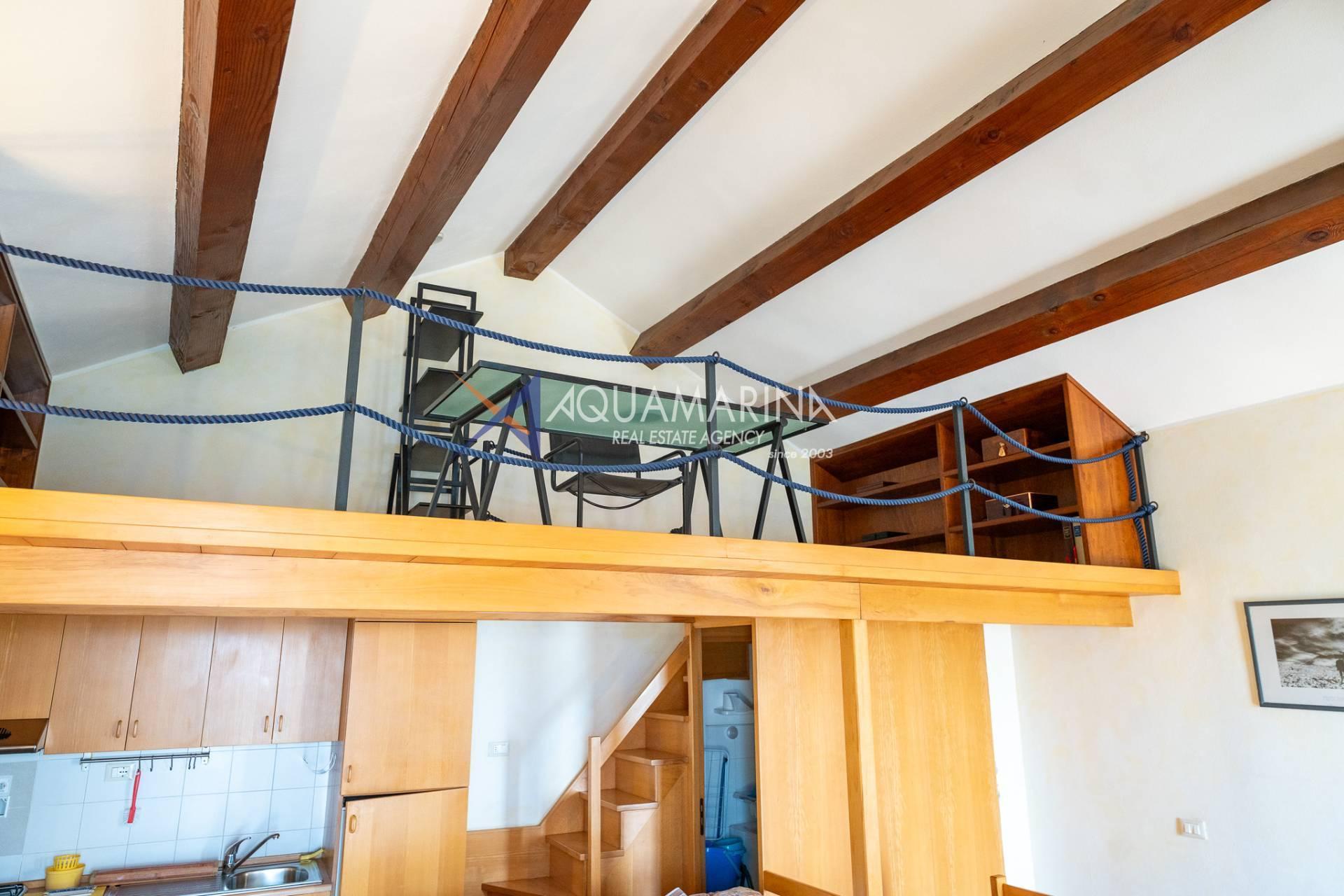 Al secondo piano raggiungibile da una scala interna troviamo la luminosissima zona giorno, con il balcone ideale per cenare davanti al mare, la cucina, completamente attrezzata e funzionale e il soggiorno che gode di una bellissima esposizione a sud, che garantisce una luminosità naturale durante tutto il giorno.