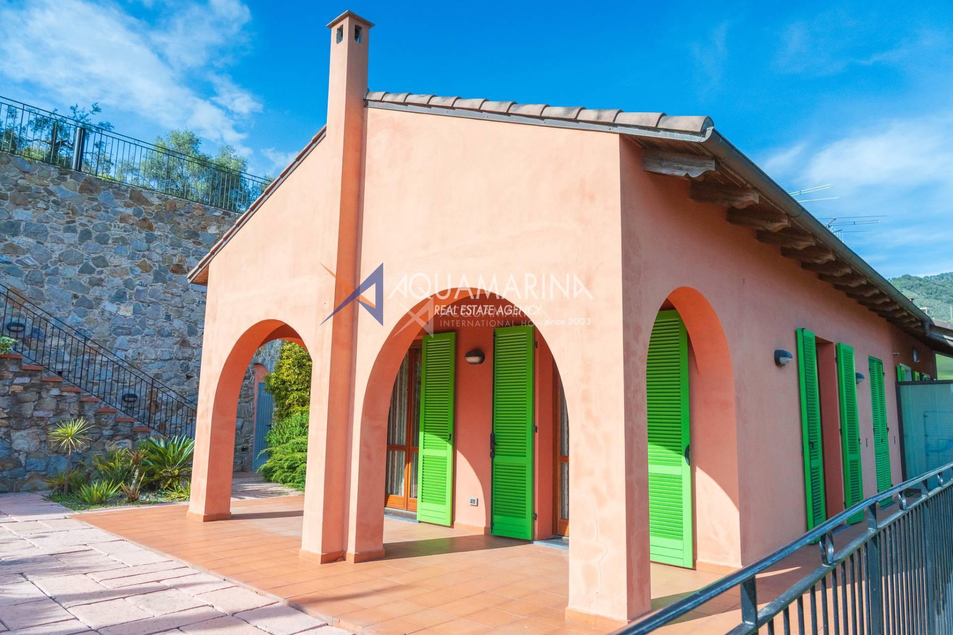 L'immobile fa parte di un gradevole complesso costituito da due ville bifamiliari e gode di una piacevole vista sulla vallata fino al mare e sulla verde collina antistante. E' stato realizzato con cura in ogni dettaglio, dotato di sistema di allarme e di aria condizionata.