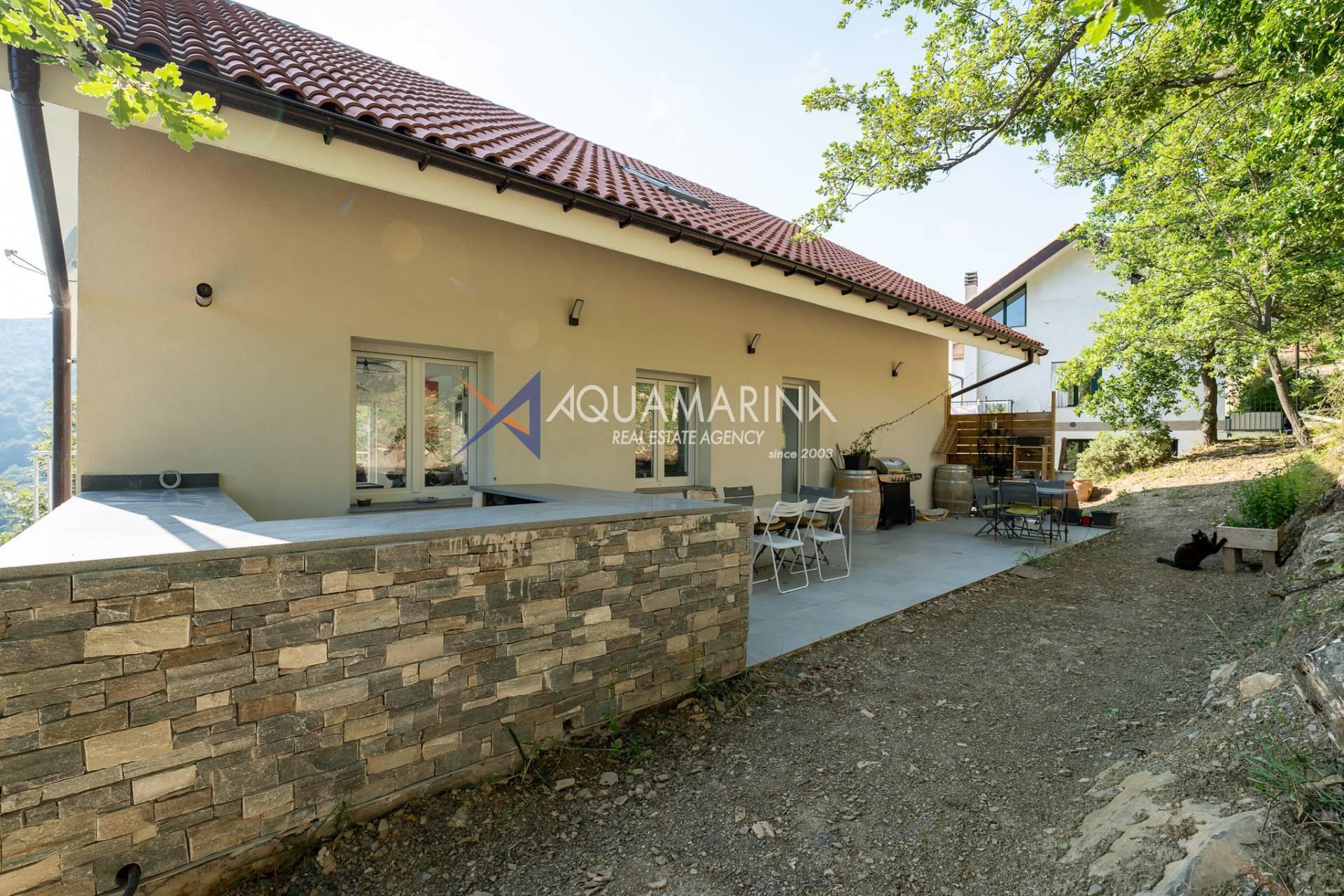 Seborga, a pochi minuti del paese zona residenziale nel verde e nella quiete più assoluto, vi proponiamo in vendita, villa di recente costruzione su 2 piani di circa 220mq ed è composta come segue: al piano terra, appartamento per gli amici , ampissimo garage/cantina e, al primo piano soggiorno con grande vetrate vista mare e cucina , due camere da letto e bagno, al secondo piano da due camere da letto con bagno en suite . Giardino con cucina estiva e piscina fuori terra