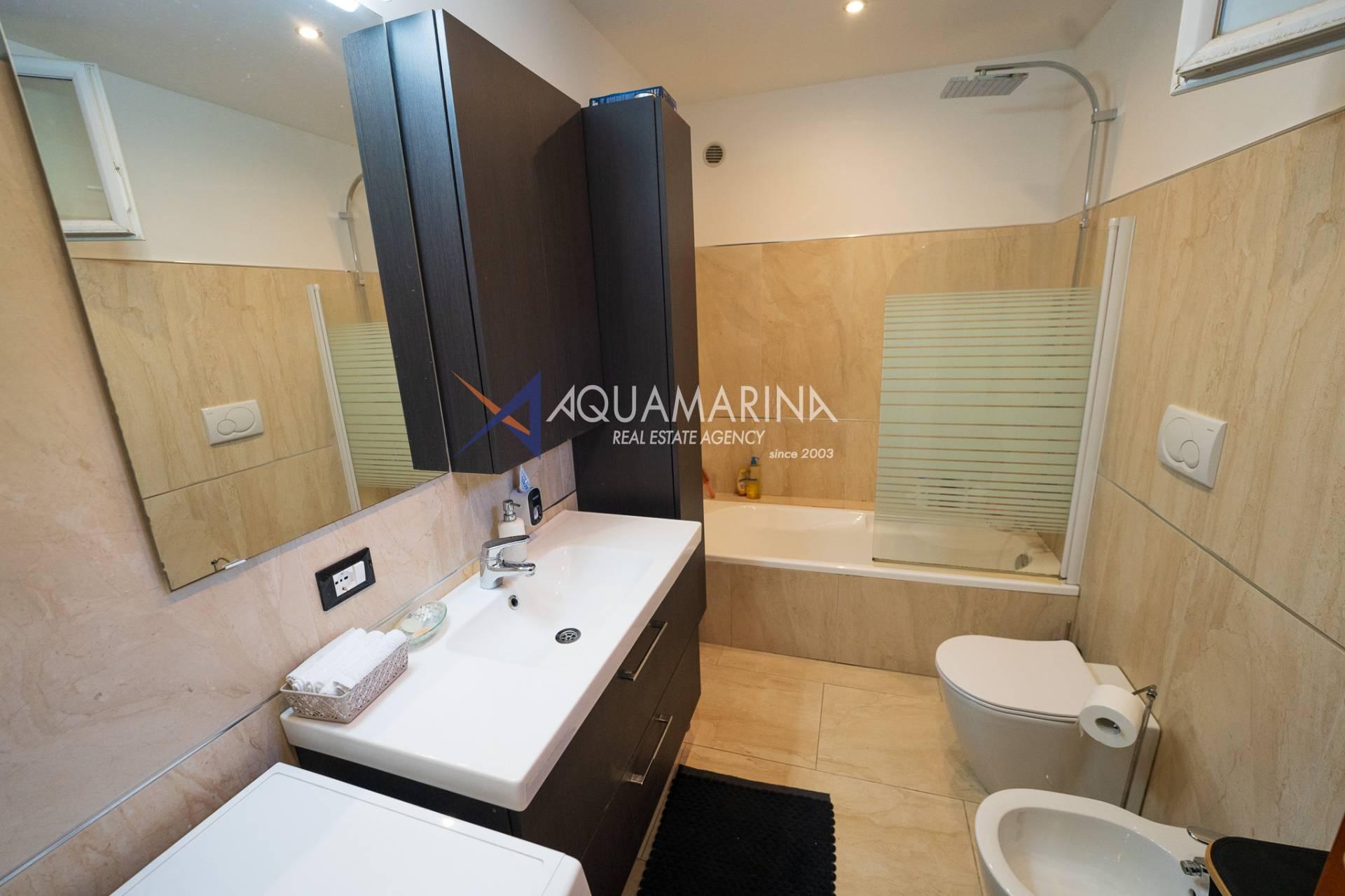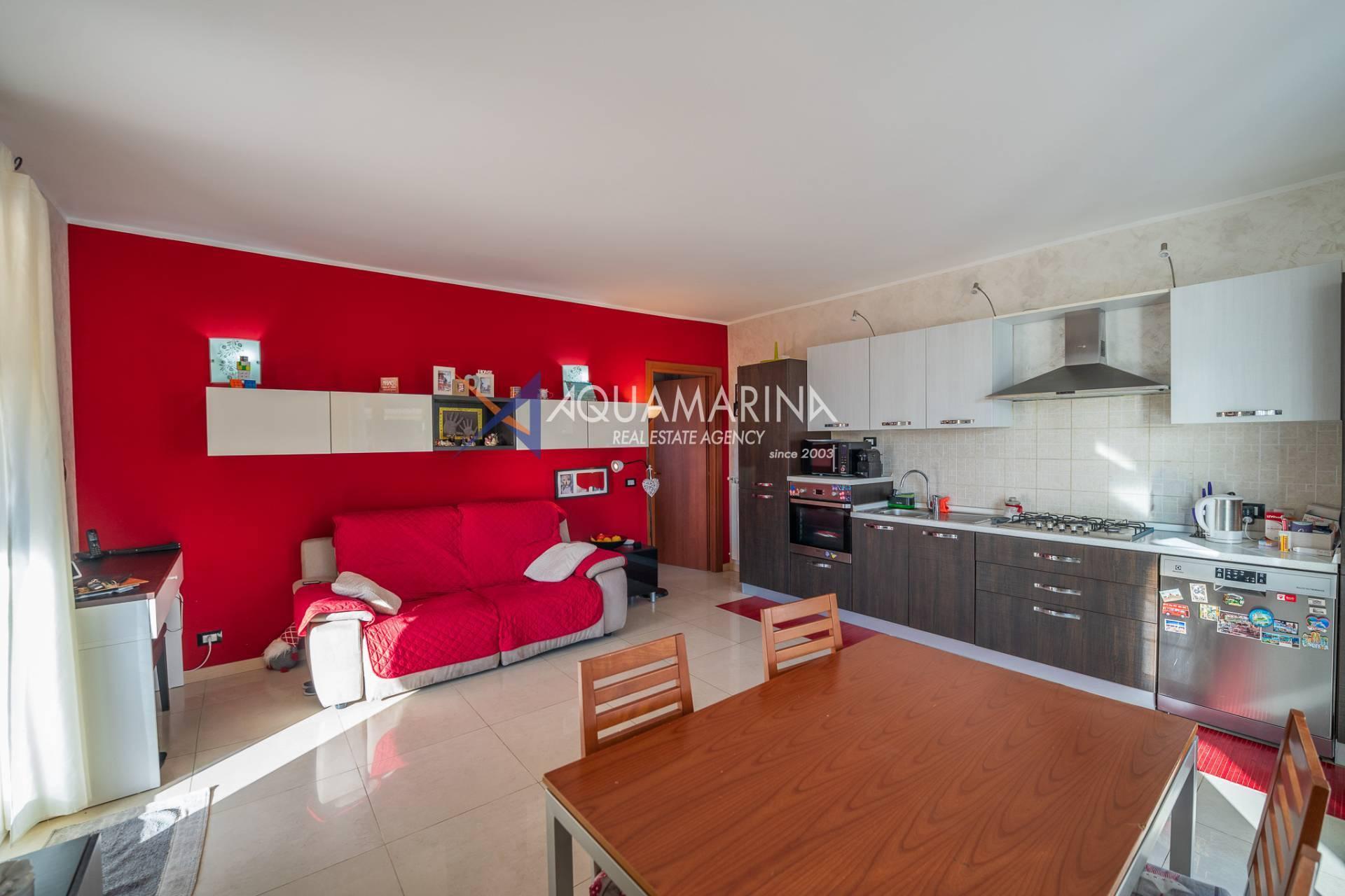 Al primo piano, si trova il primo appartamento, in ottime condizioni, composto da ingresso su soggiorno, cucina a vista, due camere da letto e bagno. Questo appartamento dispone di ingresso indipendente.