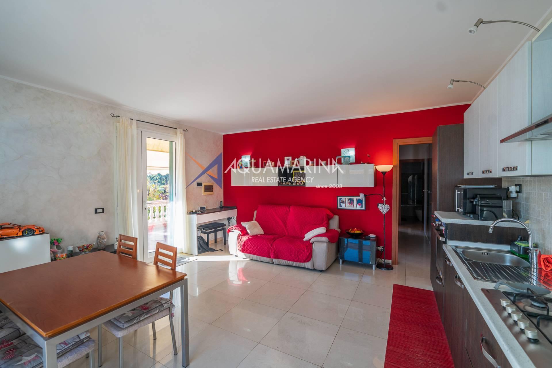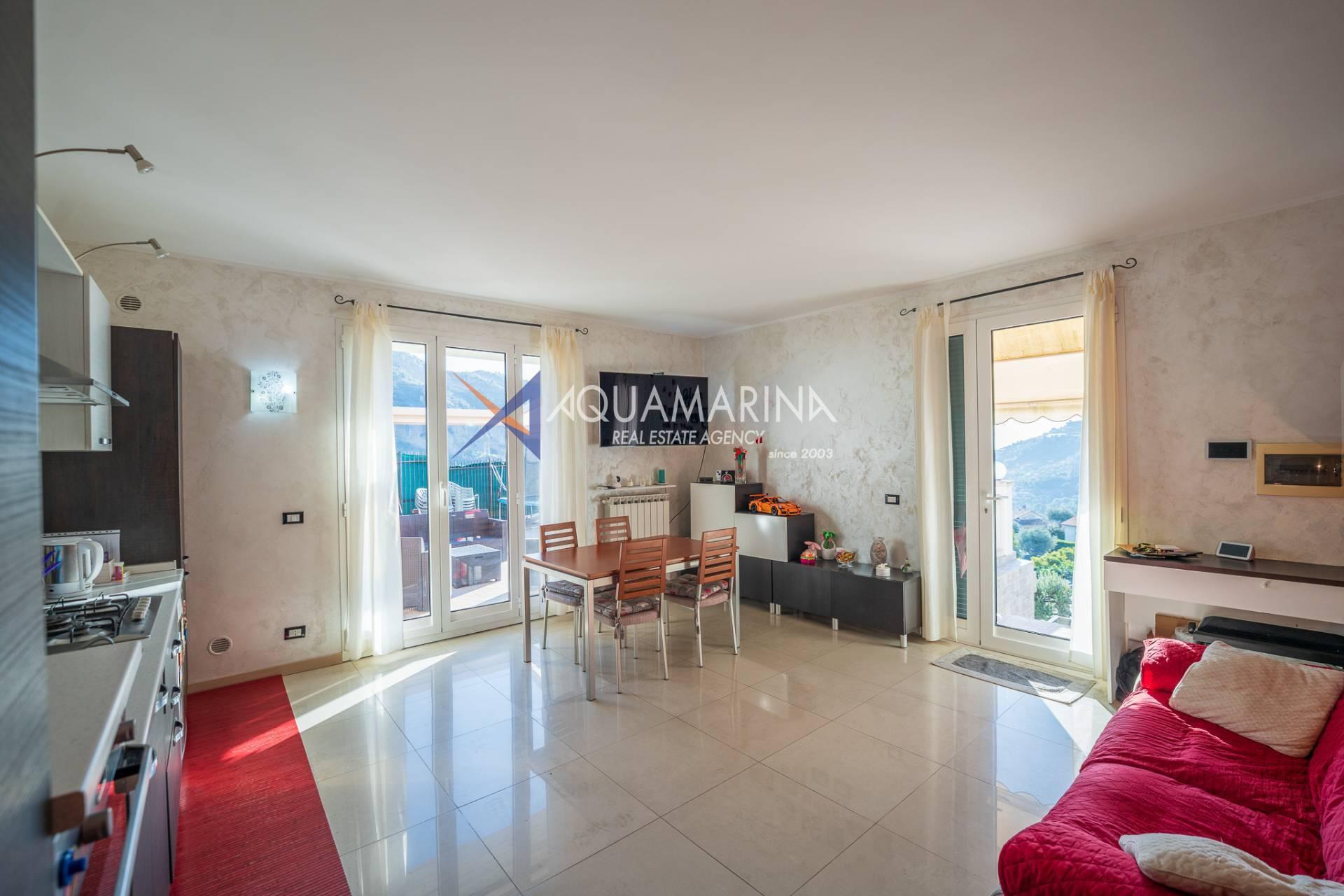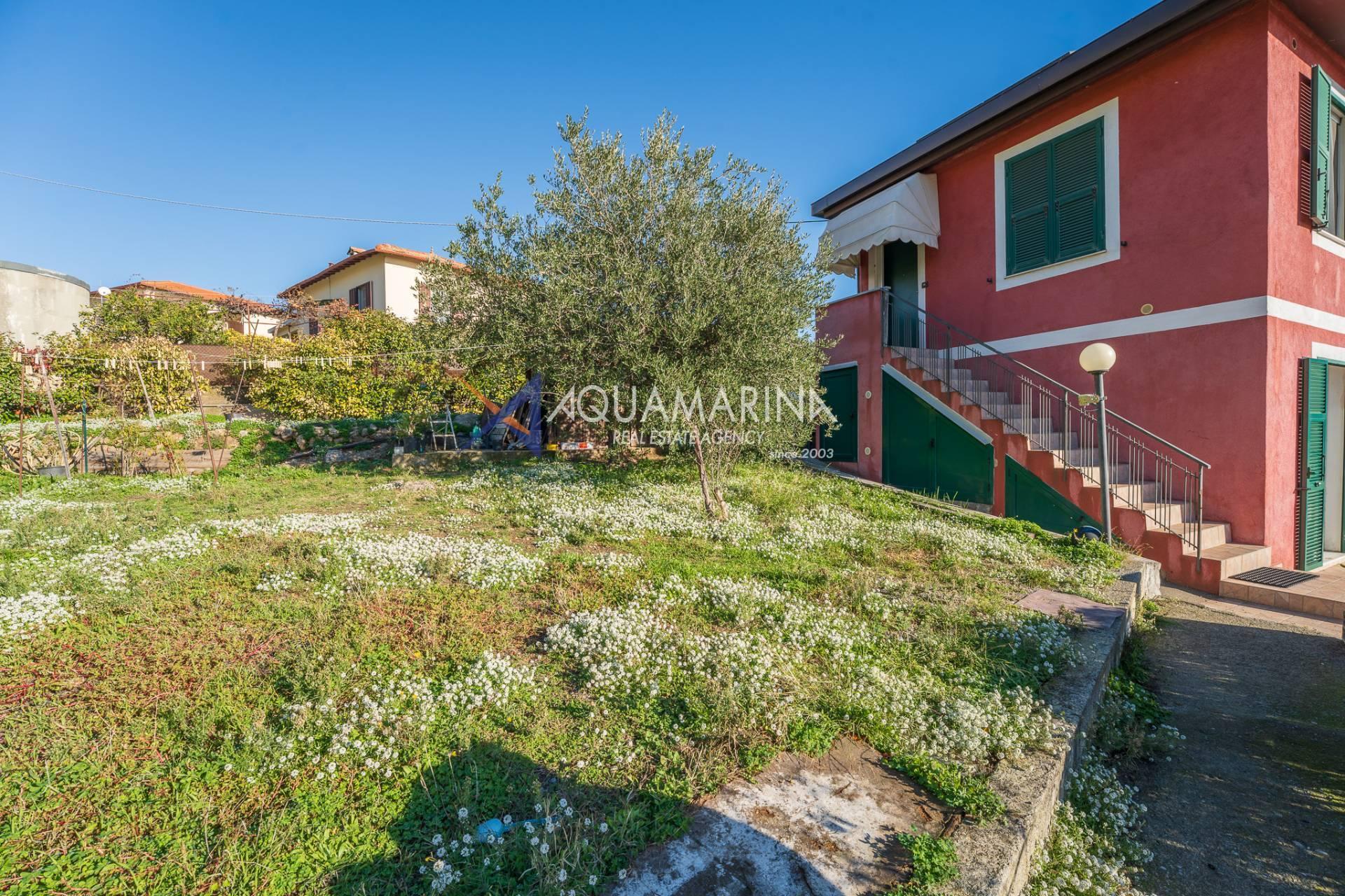 La villa è circondata da un terreno di circa 2.500 mq, attualmente in parte adibito a orto, e da ampie terrazze frontali e laterali con splendida vista sulle montagne e sul mare.