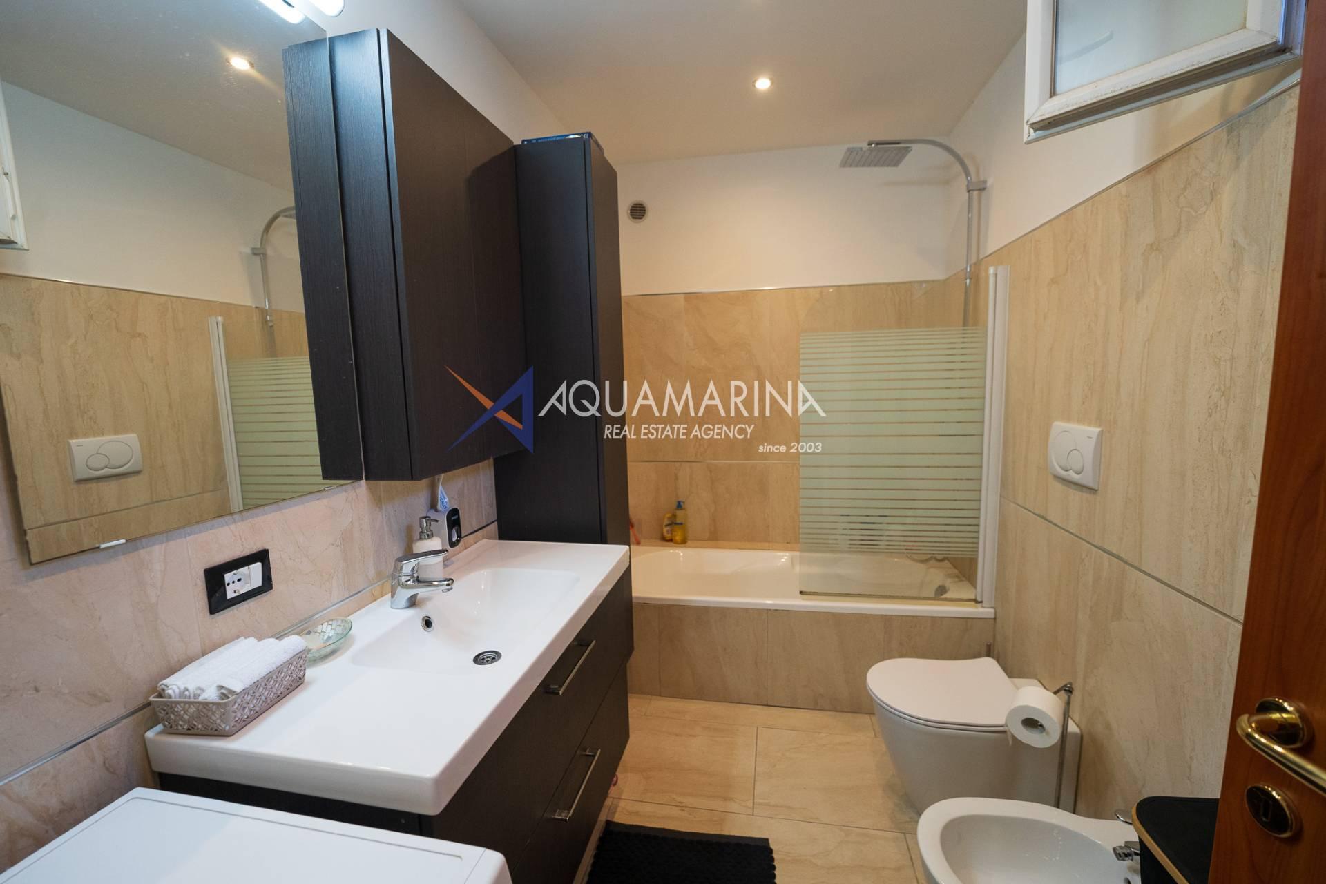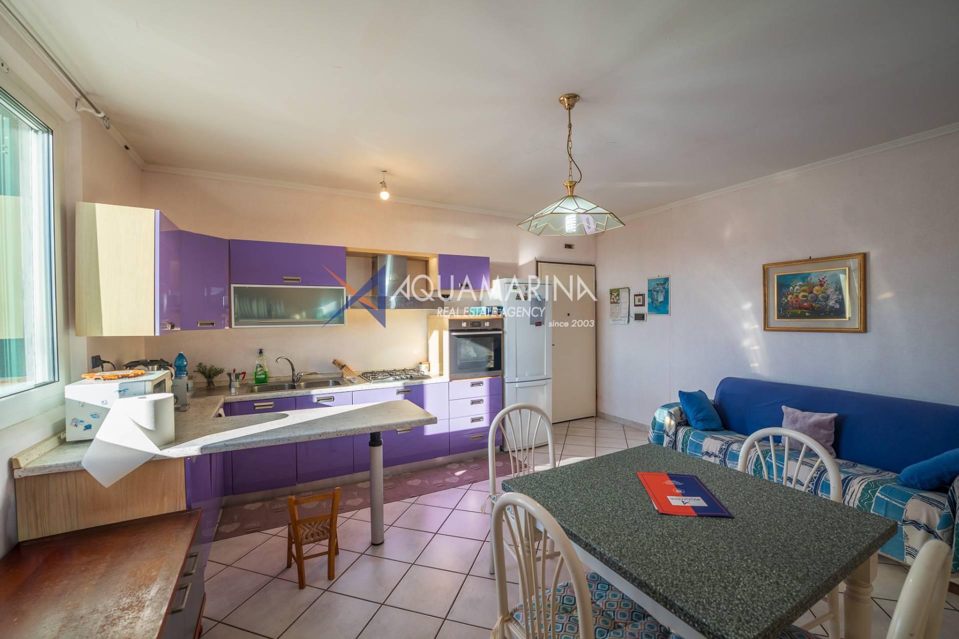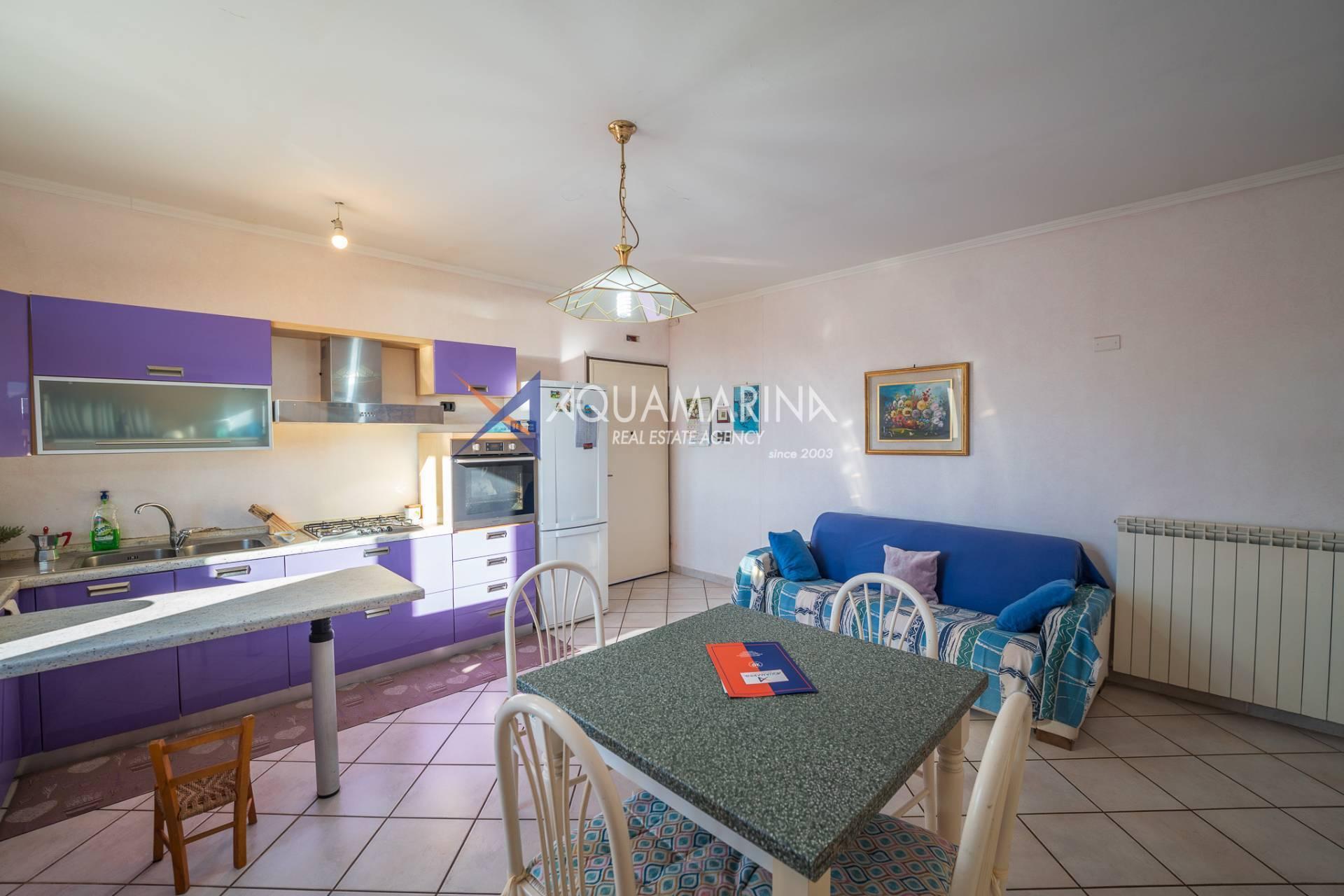 Sullo stesso livello si sviluppa una grande terrazza frontale e laterale con cucina esterna, ideale per pranzi e cene all'aperto, dalla quale si gode una vista aperta fino al mare.