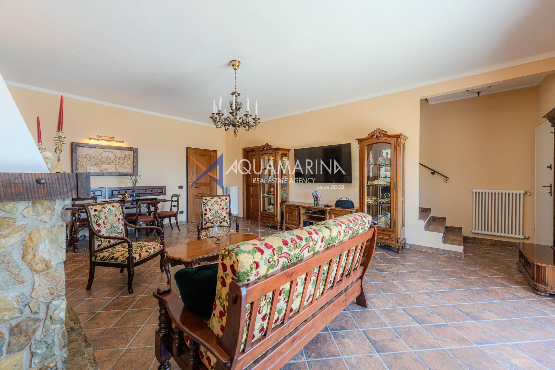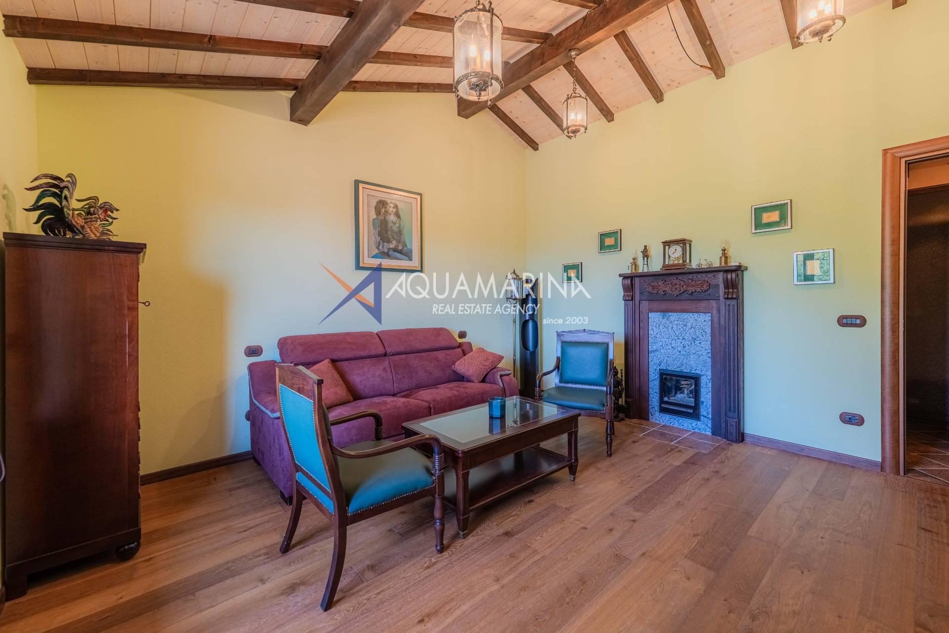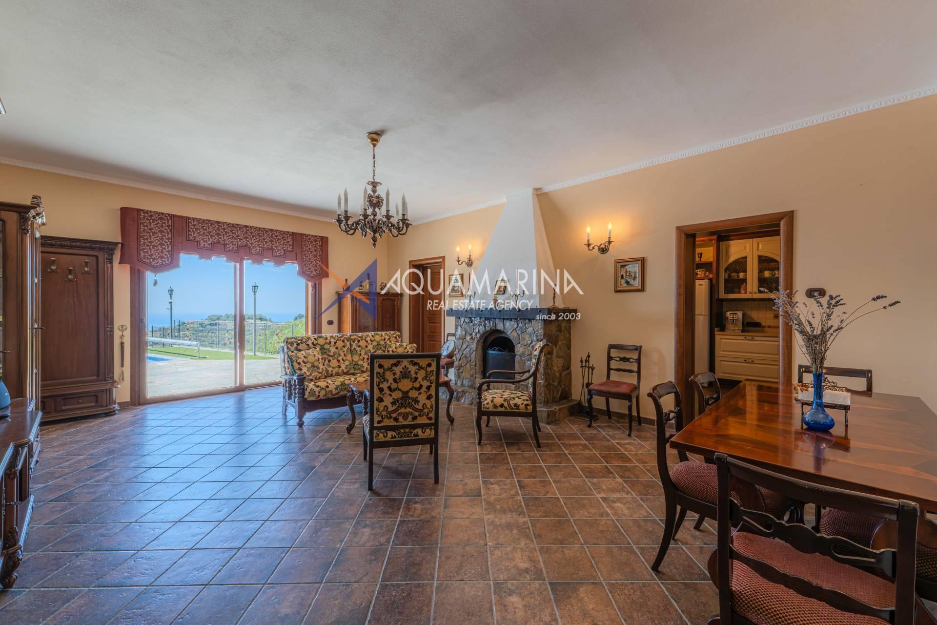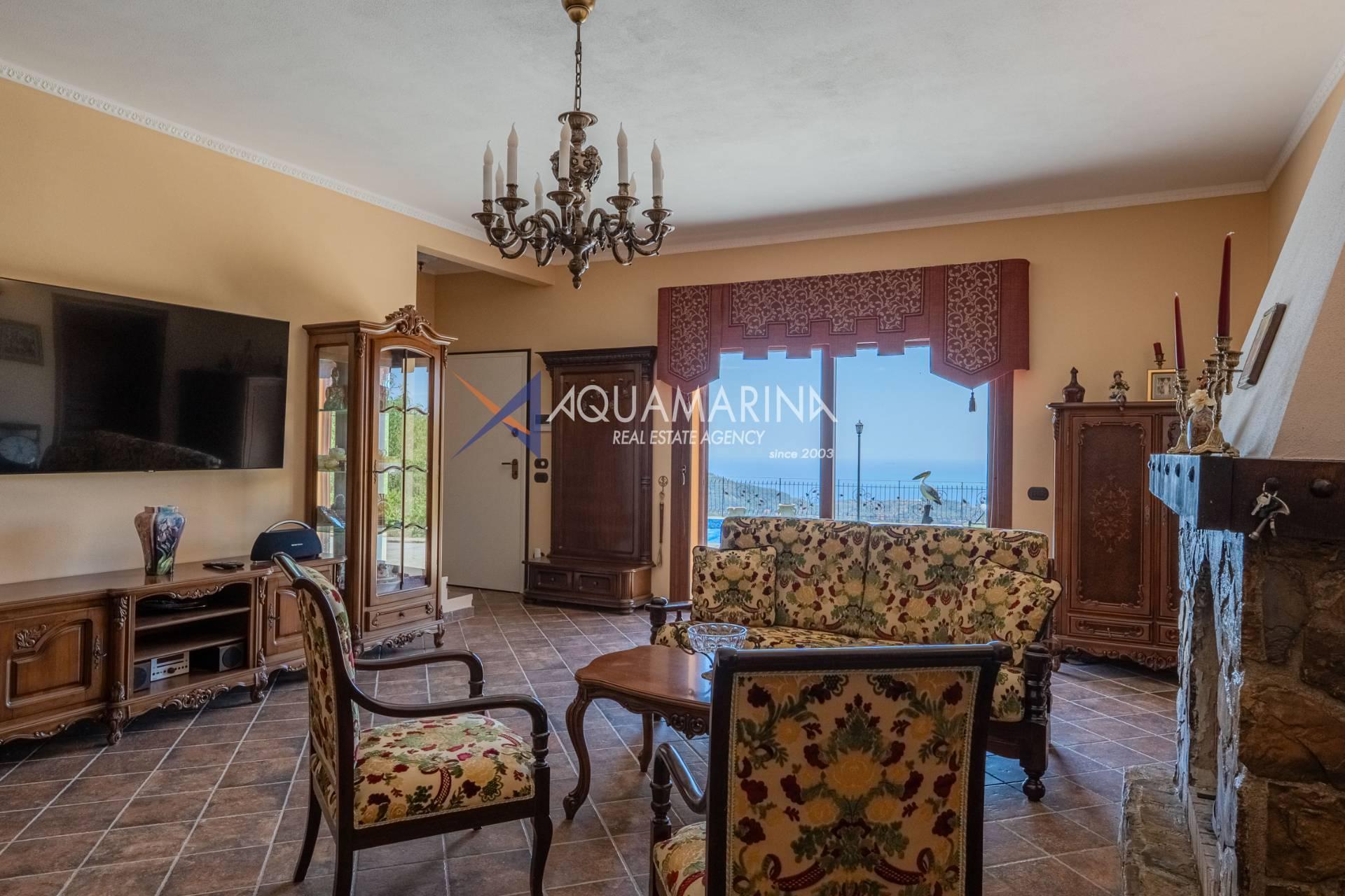 Ampio soggiorno con camino e vista mare