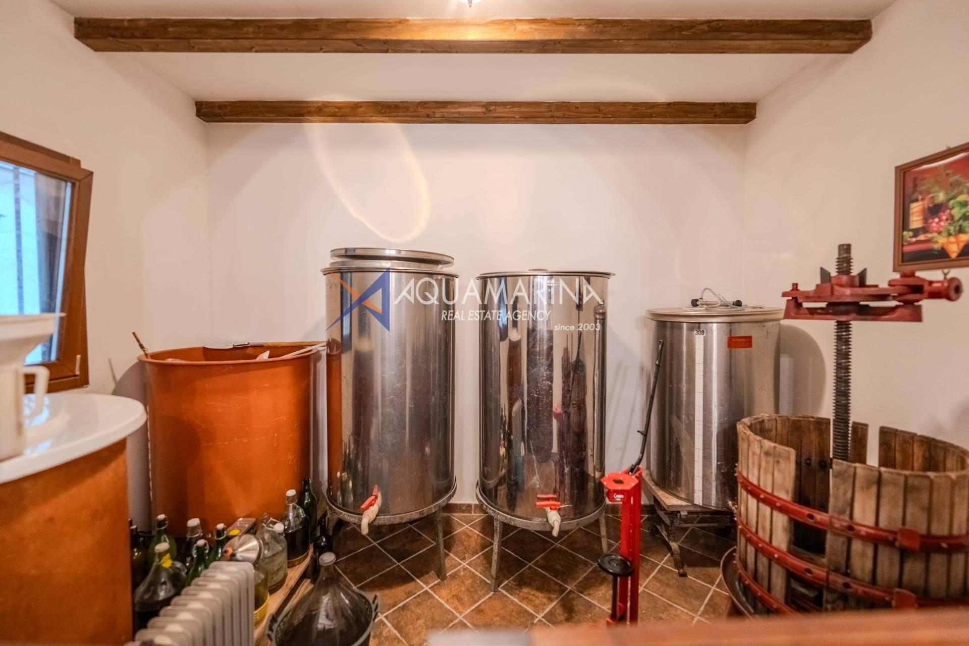 Cantina attrezzata per la conservazione e la produzione di vino