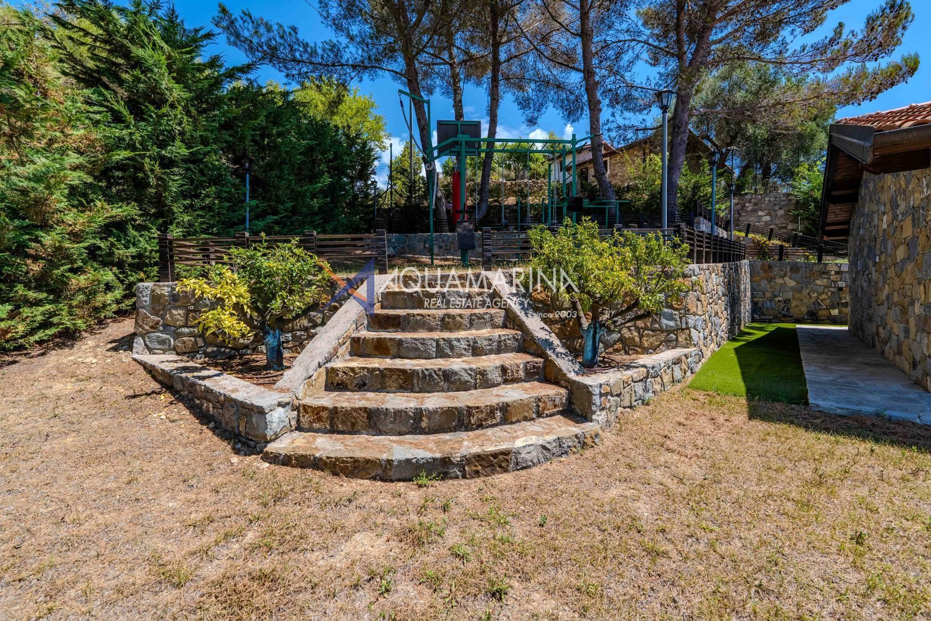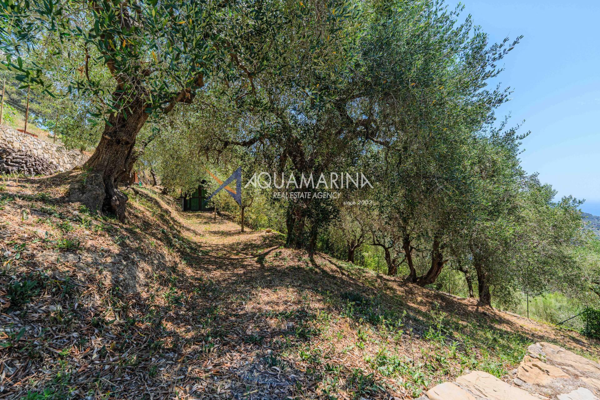 Il terreno di circa 2.900 m² ospita alberi da frutto e un uliveto, con impianto di irrigazione automatica.