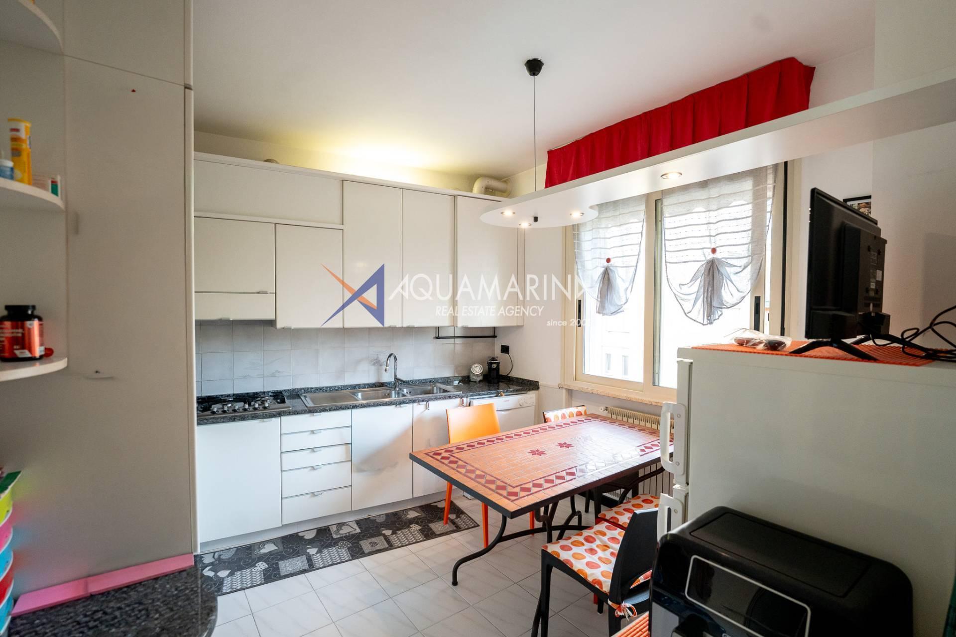Vallecrosia centralissimo a pochi passi dal mare , proponiamo in vendita appartamento al terzo ed ultimo piano in palazzina con ascensore adiacente a tutti i servizi. L'appartamento luminosissimo di circa 88 mq. è composto da: ingresso, cucina abitabile, soggiorno, due camere, due bagni di cui uno con doccia e uno con vasca, terrazzo e cantina. A completamento della proprietà un posto auto privato in corte recintata e con ingresso attraverso cancello elettrico, con possibilità di secondo posto in parcheggio adiacente. All'ingresso dell'abitazione si trova un secondo terrazzino ad uso esclusivo.