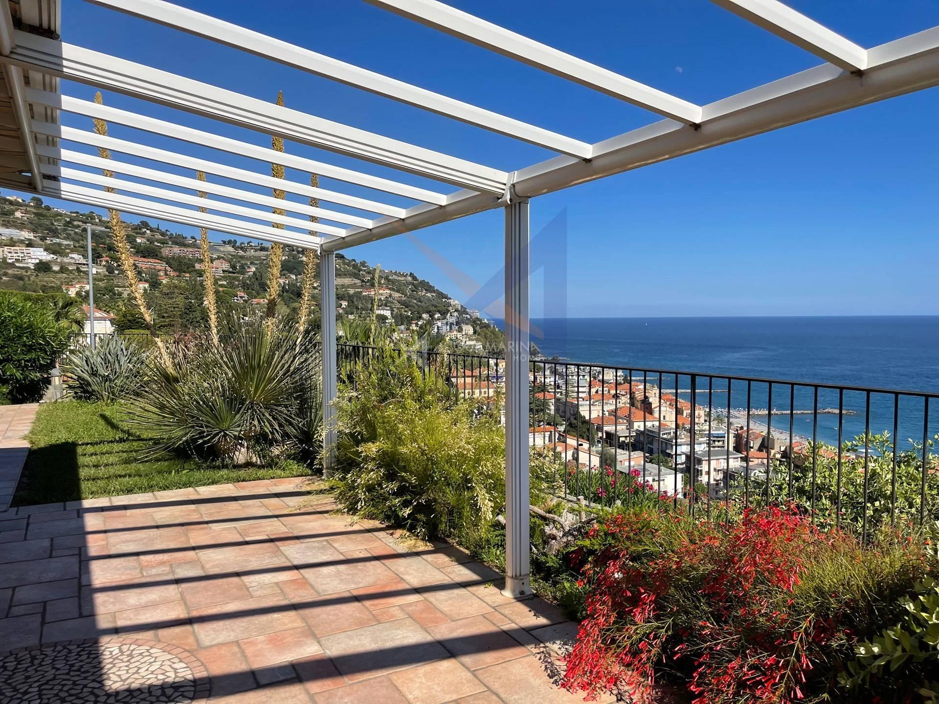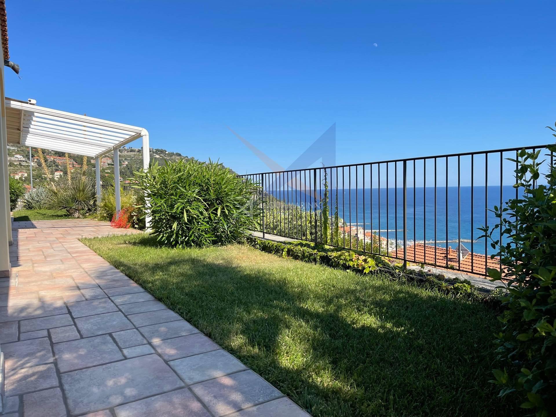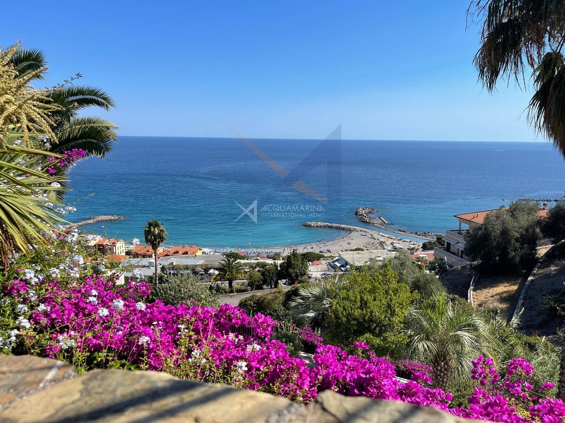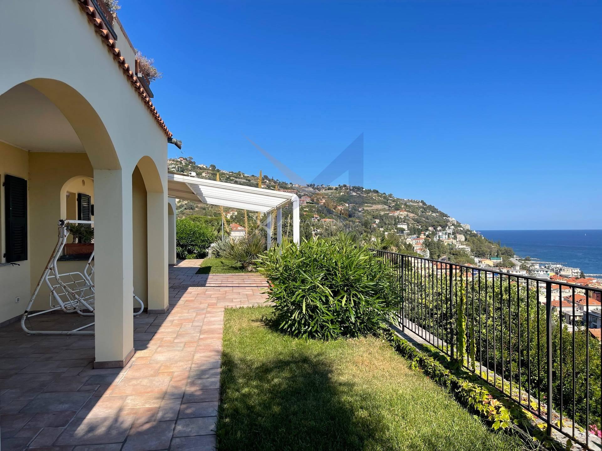 Ospedaletti, nella prima collina verdeggiante e panoramica, splendida villa con imprendibile vista mare, di recente costruzione e con supercifie pari a 400mq disposti su 3 piani.