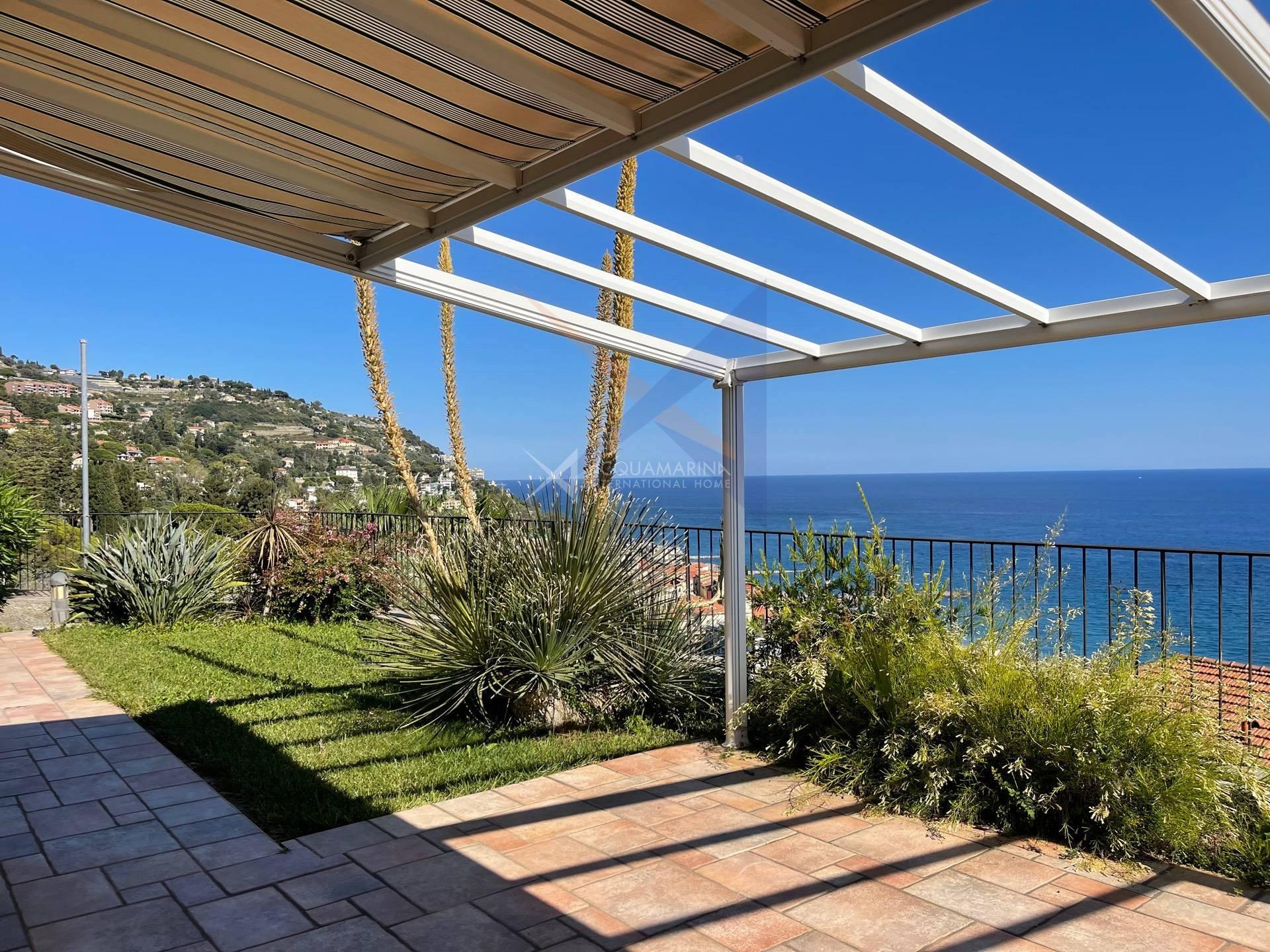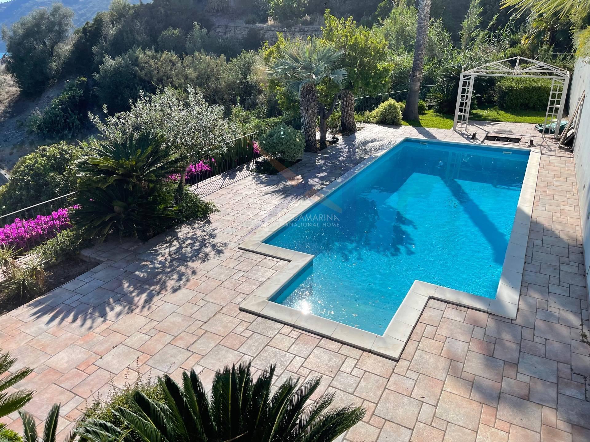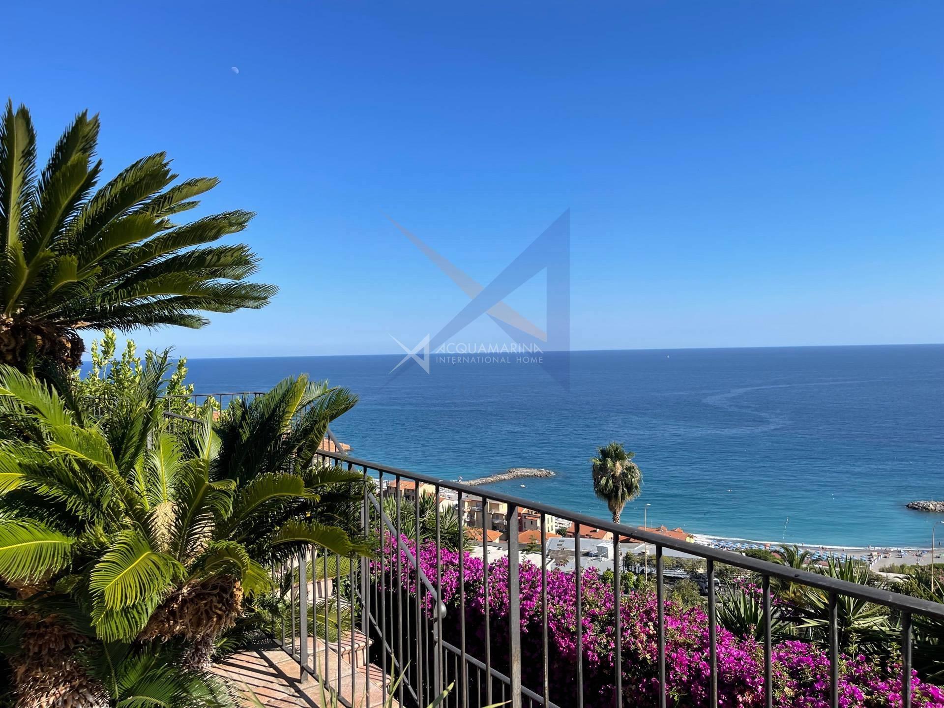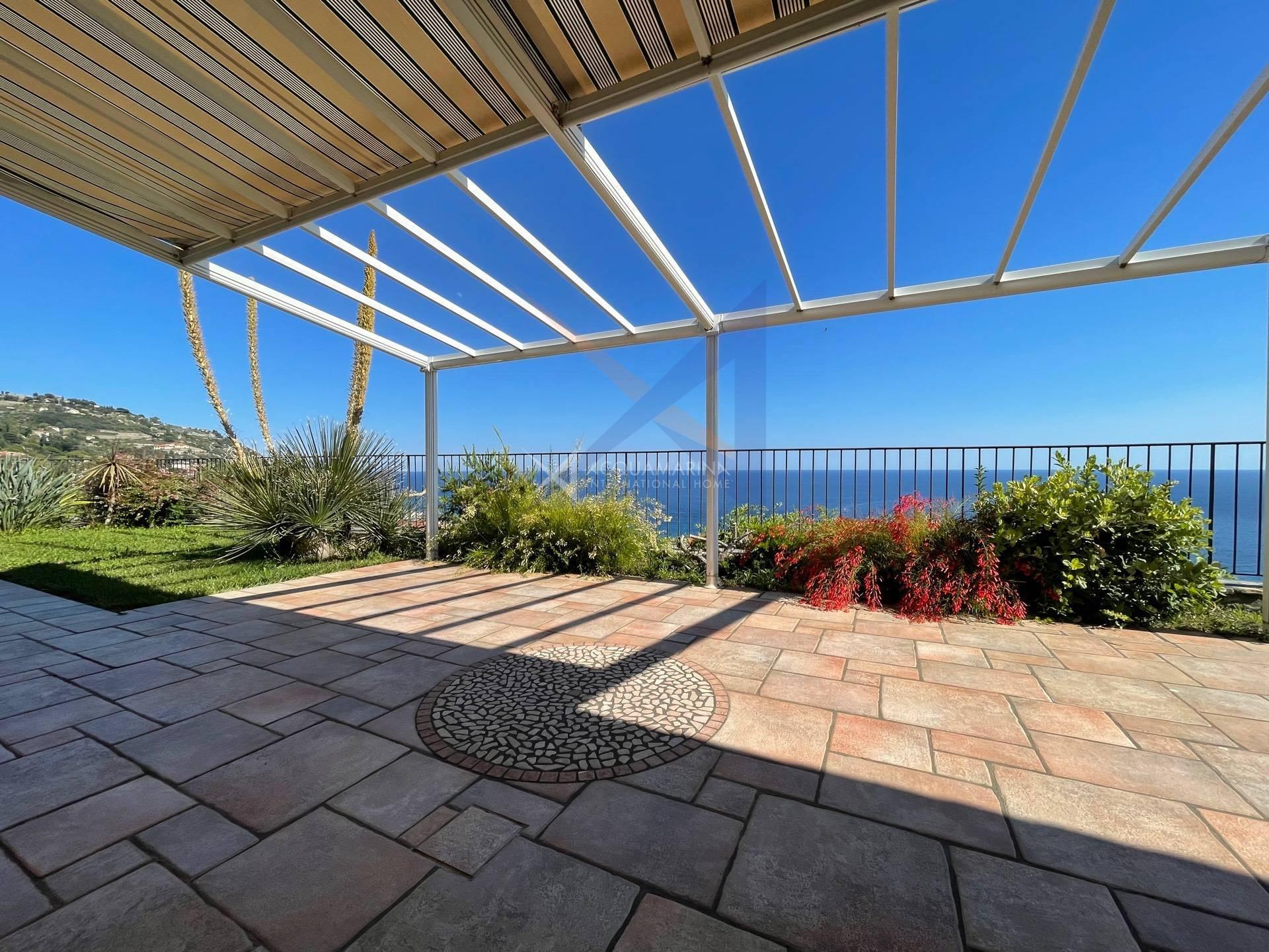 Ospedaletti, nella prima collina verdeggiante e panoramica, splendida villa con imprendibile vista mare, di recente costruzione e con supercifie pari a 400mq disposti su 3 piani.
