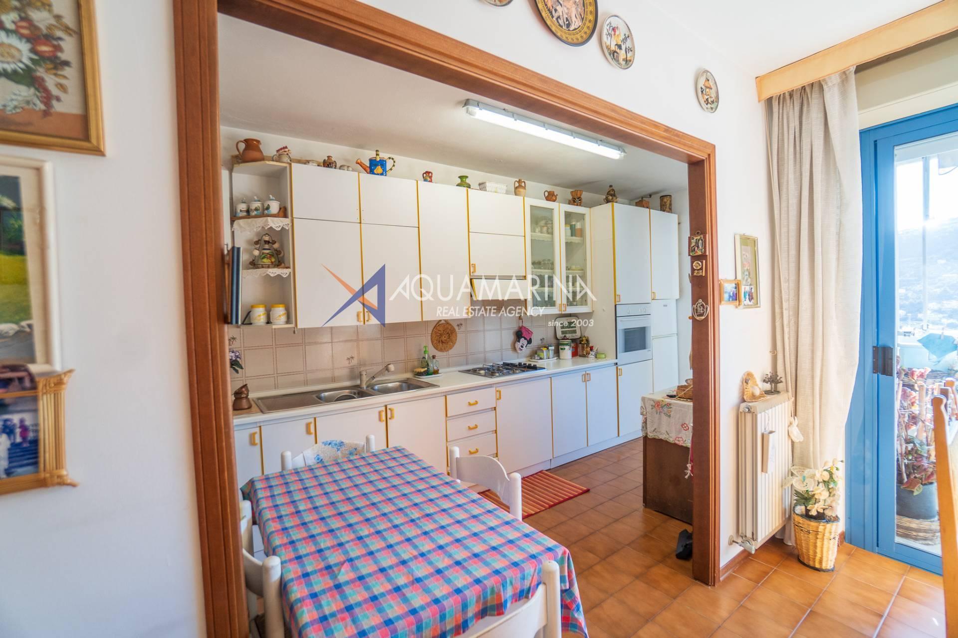 L'immobile gode di un'eccellente luminosità ed è dotato di riscaldamento autonomo. Si compone di un ampio ingresso, soggiorno con grande finestra e accesso al balcone con splendida vista aperta sulle montagne e sul mare, cucina a vista, due spaziose camere da letto entrambe con accesso al balcone e ampio bagno.