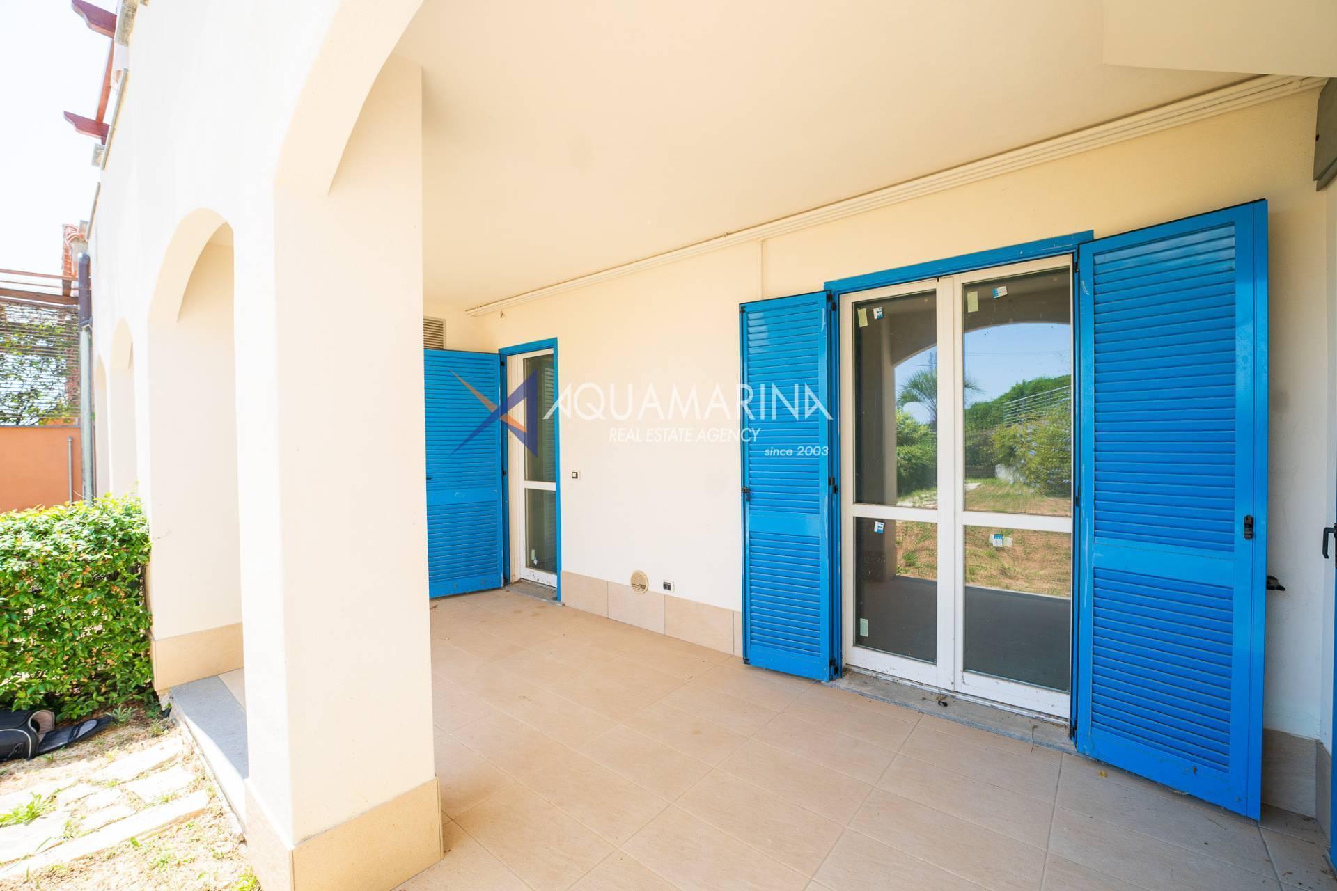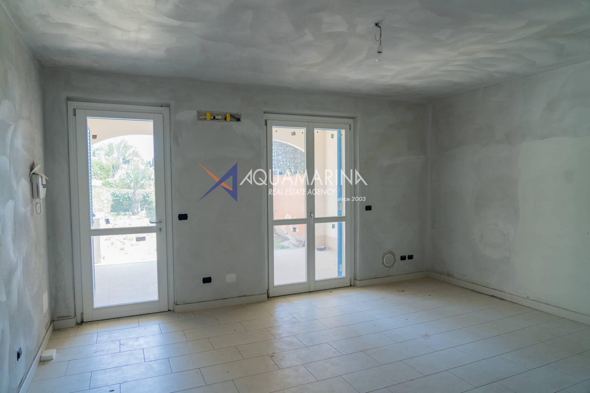 L'appartamento è così composto: entrata in soggiorno con cucina a vista al quale si accede tramite un piccolo giardino privato, camera da letto con altro porticato, terrazza e giardino con piena vista mare, bagno.