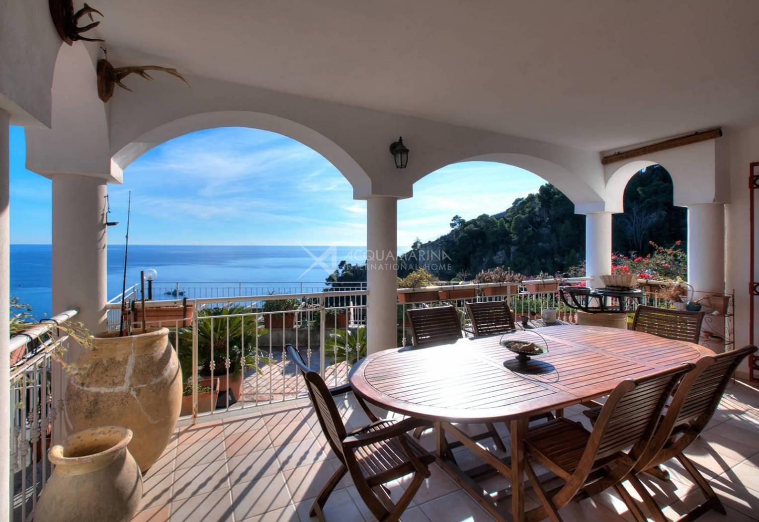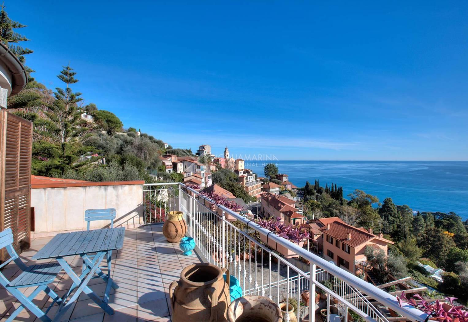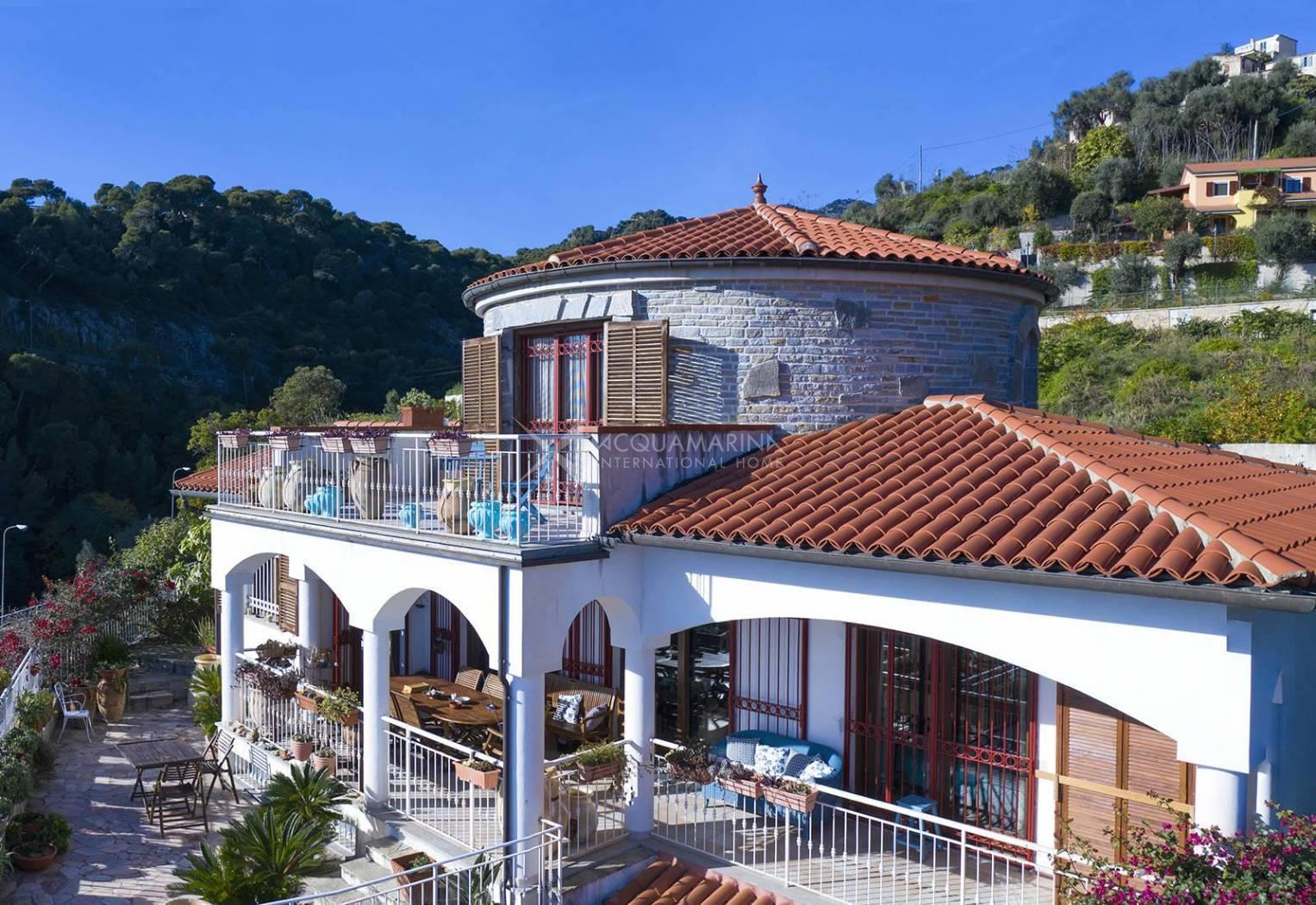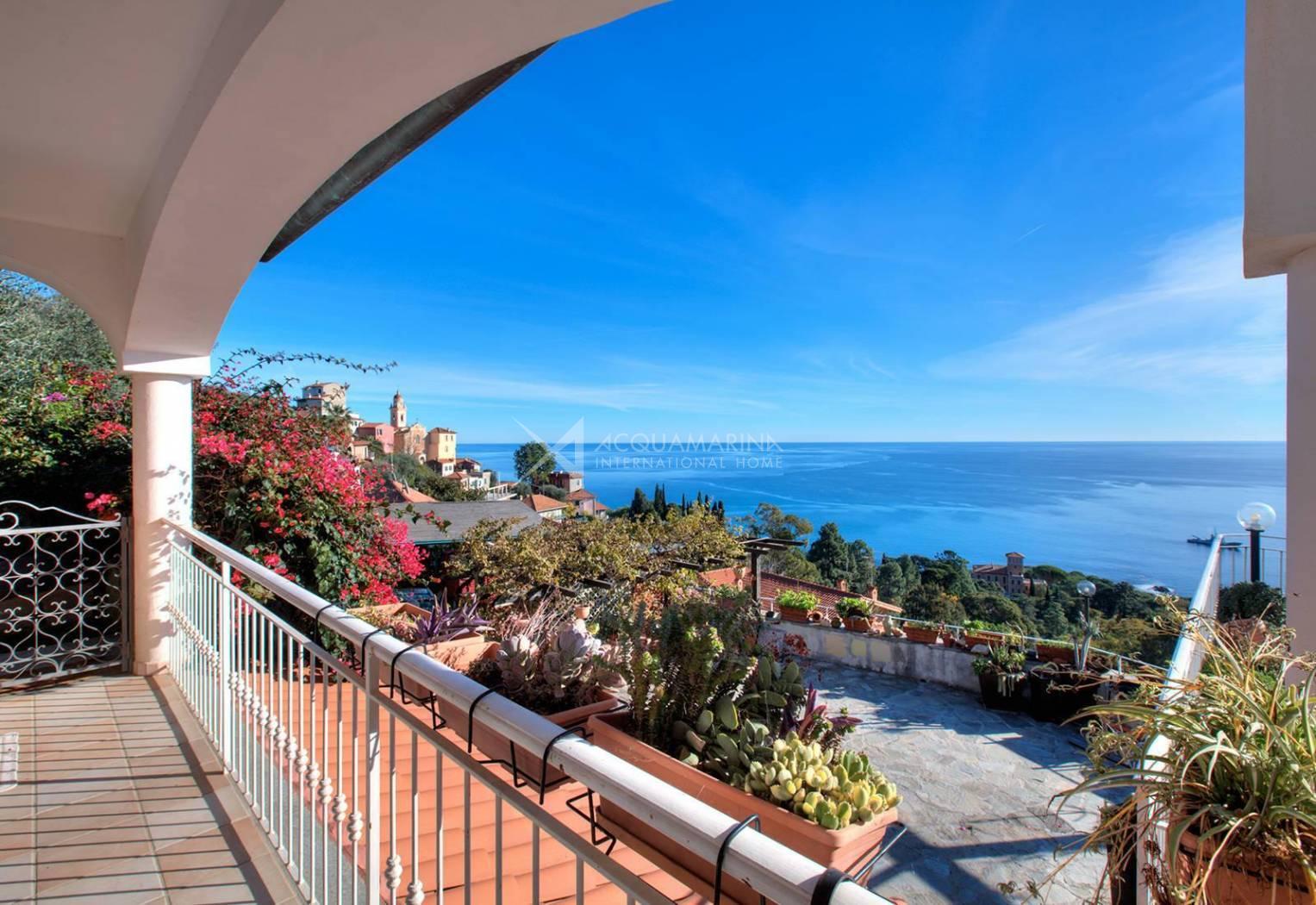 La villa, a pochi passi dai prestigiosi Giardini Hanbury, gode di un'ampia area porticata, spaziose terrazze pavimentate, splendido giardino e tre posti auto coperti.
